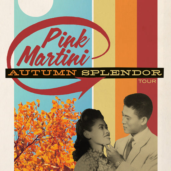 Pink Martini’s 2023 Autumn Splendor tour sees us visiting many of our favorite cities across the Eastern US & Canada at the height of the magnificence of the season. This colorful limited edition poster, designed by artist Mike King, commemorates the tour in inimitable Pink Martini style. 16” x 24”, printed on high quality paper in Portland, OR.