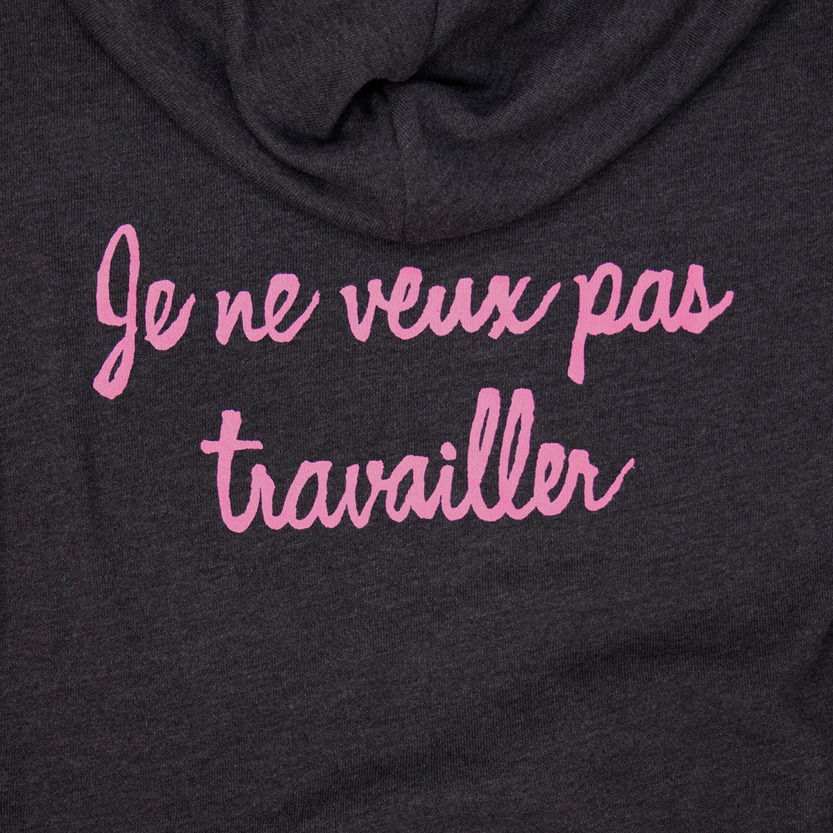 In celebration of the record that started it all, these hoodies have our classic Pink Martini around-the-world logo printed on the front and "Je ne veux pas travailler" across the back. Both are printed in the charming and aptly named "French Pink" on a charcoal grey heather, high quality, super soft cotton blend hoodie. Perfect for a Monday back at the office after a too-short weekend! Super soft tri-blend sweatshirt from Bella+Canvas.
