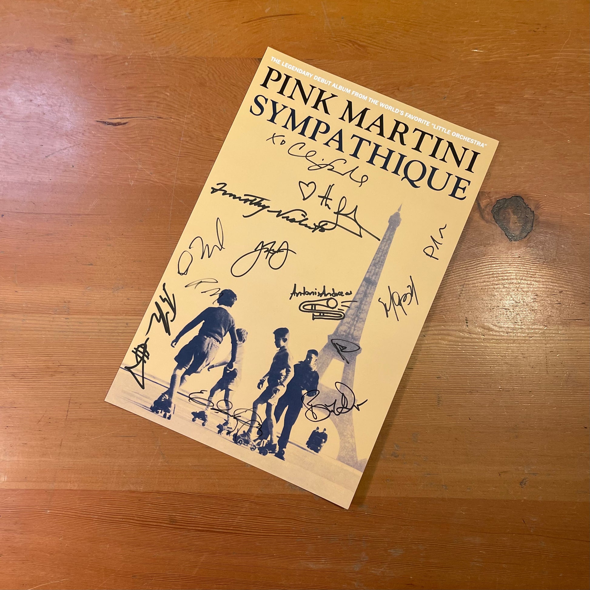 Pink Martini’s debut album "Sympathique” introduced our “little orchestra” to the world, and is still our best-selling album, with well over 1,000,000 copies sold. Its cover design, featuring the Eiffel Tower, has become an iconic symbol of the band, and now you can feature this seminal artwork on your wall with our new 11” x 17” Sympathique poster, printed on high quality paper in Portland, OR.