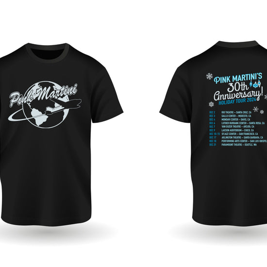 This tee commemorates the 30th Anniversary of Pink Martini with dates from their iconic holiday tour of 2024! This is a limited run and when they're gone, they're gone!
